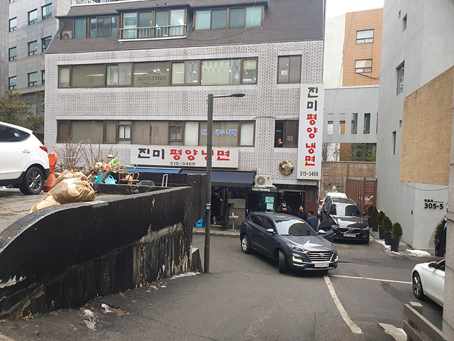 학동역에 방문할 일이 있어서 갔다가 점심 먹을 곳을 찾다보니 진미평양냉면이 눈에 띄었습니다. 평일이었고, 점심시간이 약간 지난 시간이어서 기다리지 않고 먹을 수 있다는 생각에 진미평양냉면으로 발걸음을 옮겼습니다. 1시 반이 넘은 시간이었음에도 생각보다 많은 분들이 식사를 하고 있었습니다.