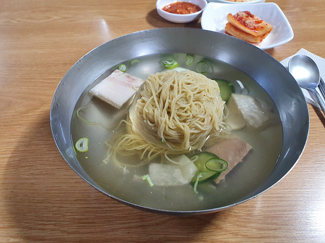 면은 여전히 호불호가 있을 수 있습니다. 다른 곳의 평양냉면보다는 면이 투박하다기보다는 매끄럽습니다. 하지만 육수와 잘 어울립니다. 부족함이 없습니다.