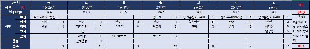 5주차 체중: 84.0 kg