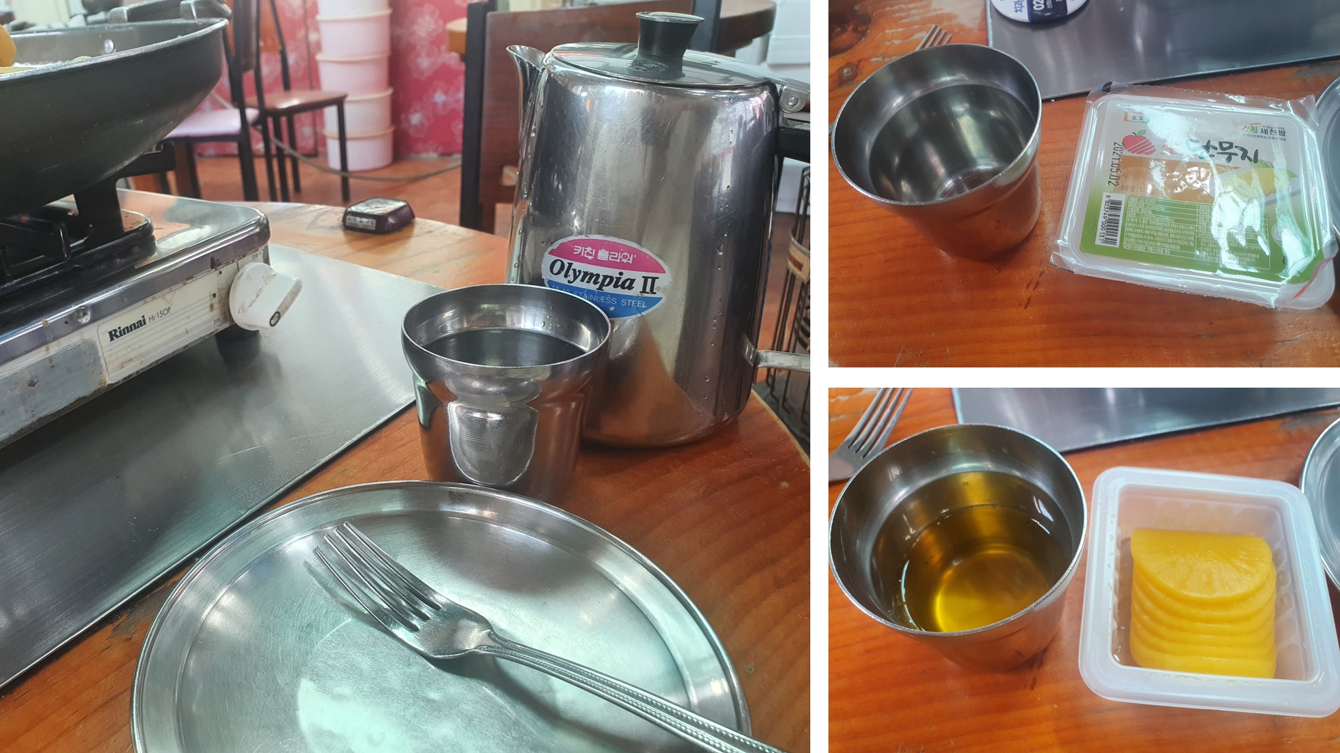 몇 년 전에는 3인분에 14,000원인데 가격이 올라 이제 3인분에 16,000원입니다. 몇년전 계란 파동이 있던 이후로 삶은 계란도 추가 주문으로 바뀌었습니다. 그래도 한 끼 식사에 1인분에 7,000~10,000원인 시대에 3인분에 16,000원이라니 감사한 가격입니다.